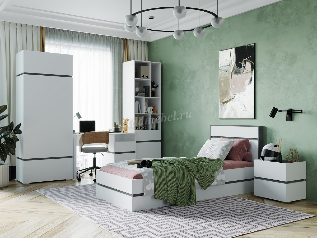 • Кровать Аркон 0.9 с настилом (Белый/Бетон темный)