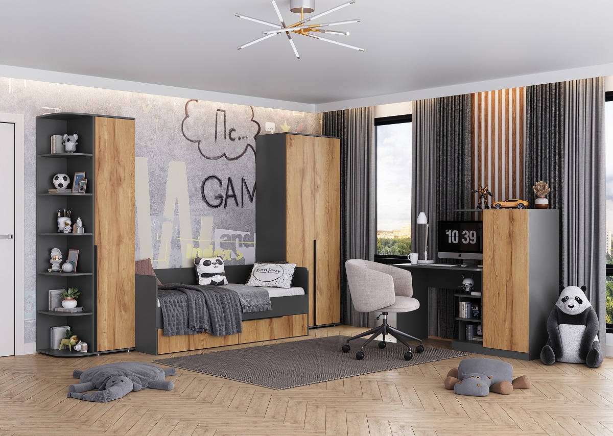 Стол письменный Стил с пеналом правый (Темно-серый/Дуб золотистый)