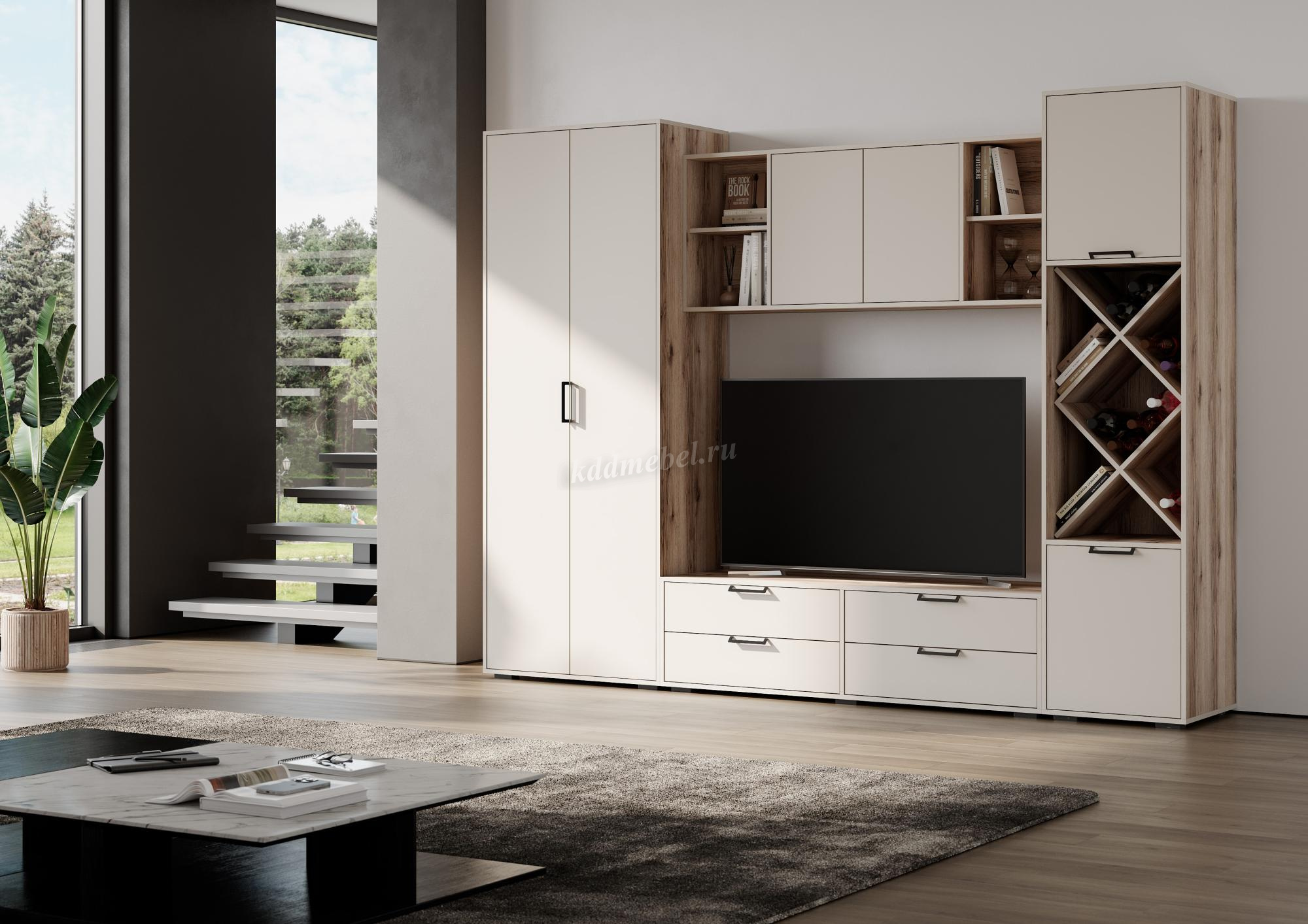 Описание Гостиная Оливия (Дуб делано светлый/Сатин)