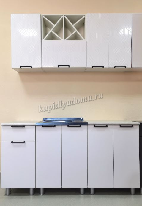 Кухня Куб 1,6 ЛДСП (Белый/Белый глянец/Олива жемчужная) наличие товара: