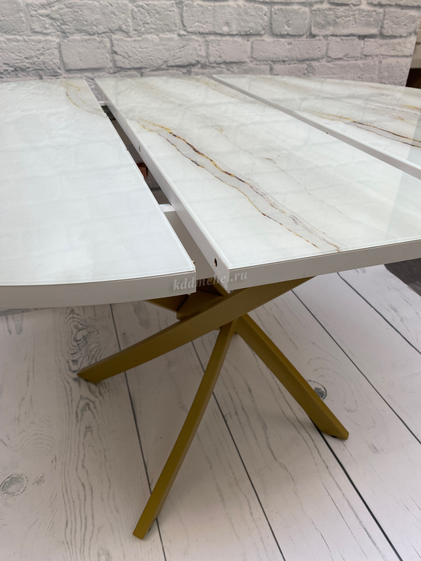 Стол обеденный раздвижной Арчи (Мрамор 691/Опоры золотоые)
