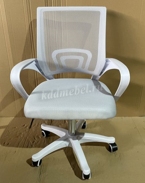 Современное офисное кресло с удобной спинкой, сиденьем из акриловой сетки и устойчивым пятилучным пластиковым основанием, снабжённым 50-мм двойными колёсиками.
