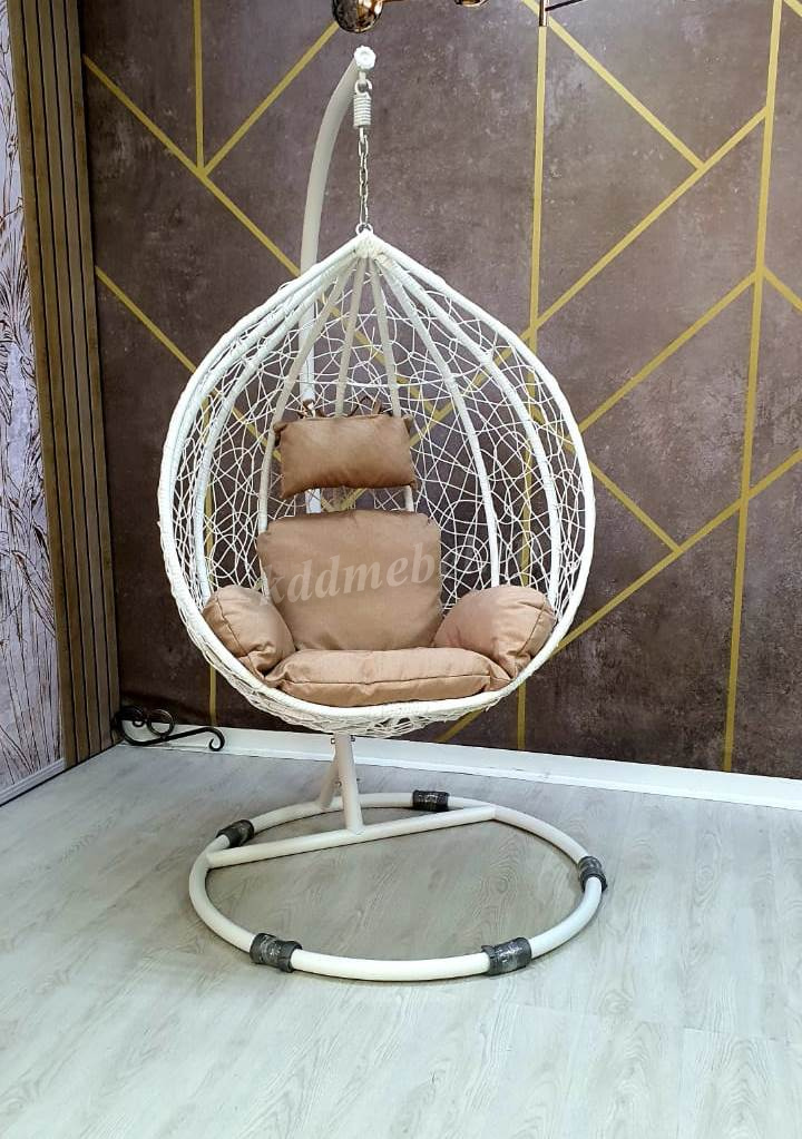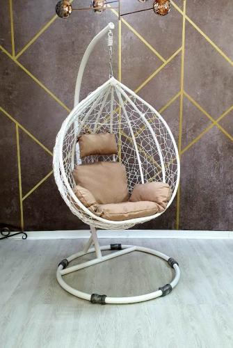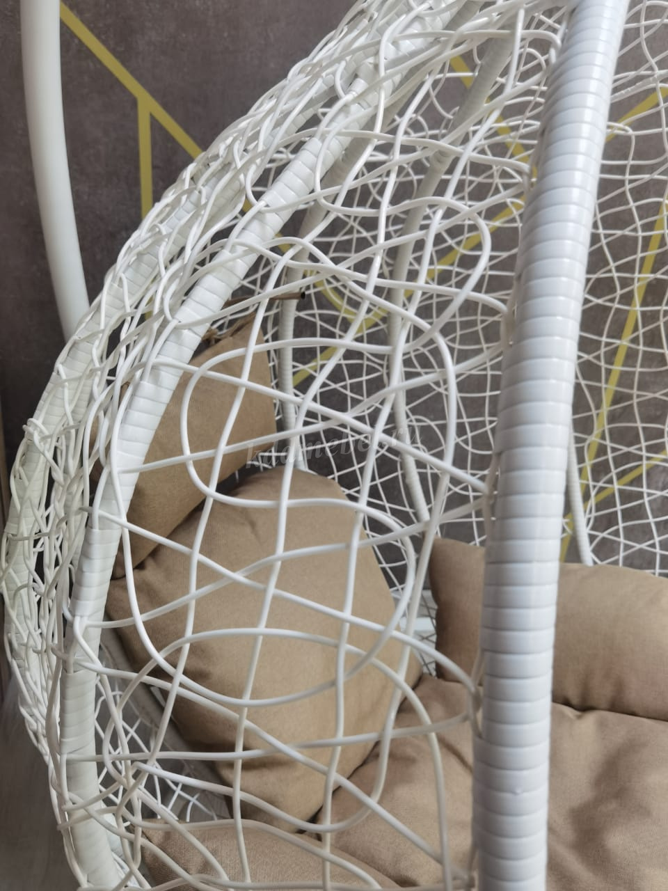 Описание Кресло подвесное маленькое Кокон F-03 (Белый ротанг/Бежевая подушка)
