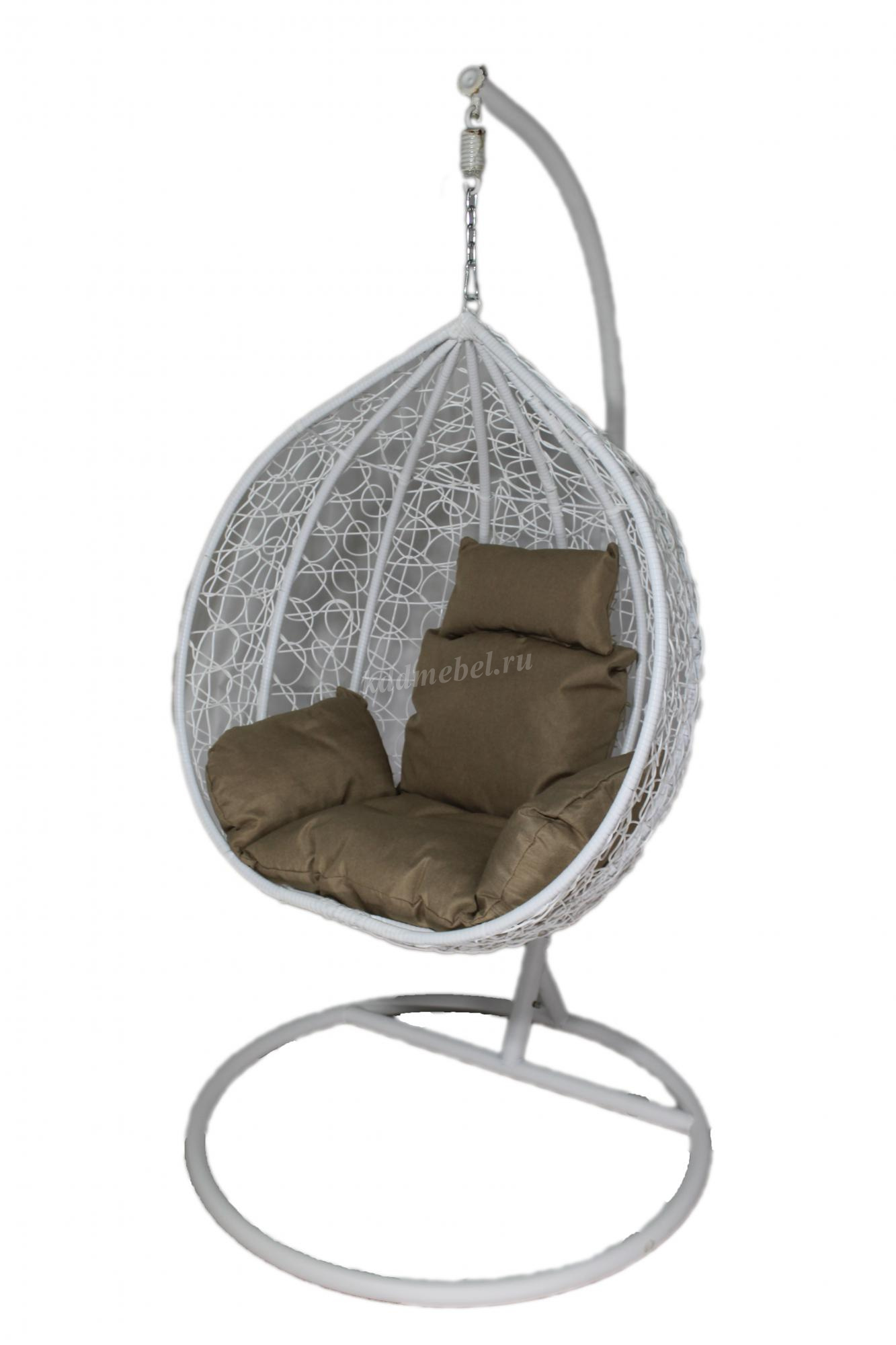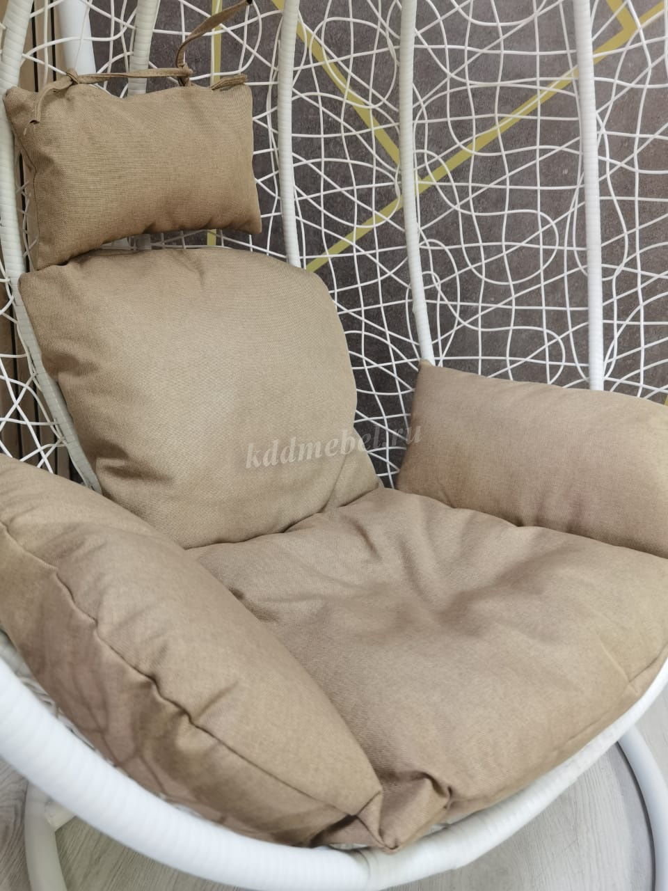 Кресло подвесное маленькое Кокон F-03 (Белый ротанг/Бежевая подушка) наличие товара:
