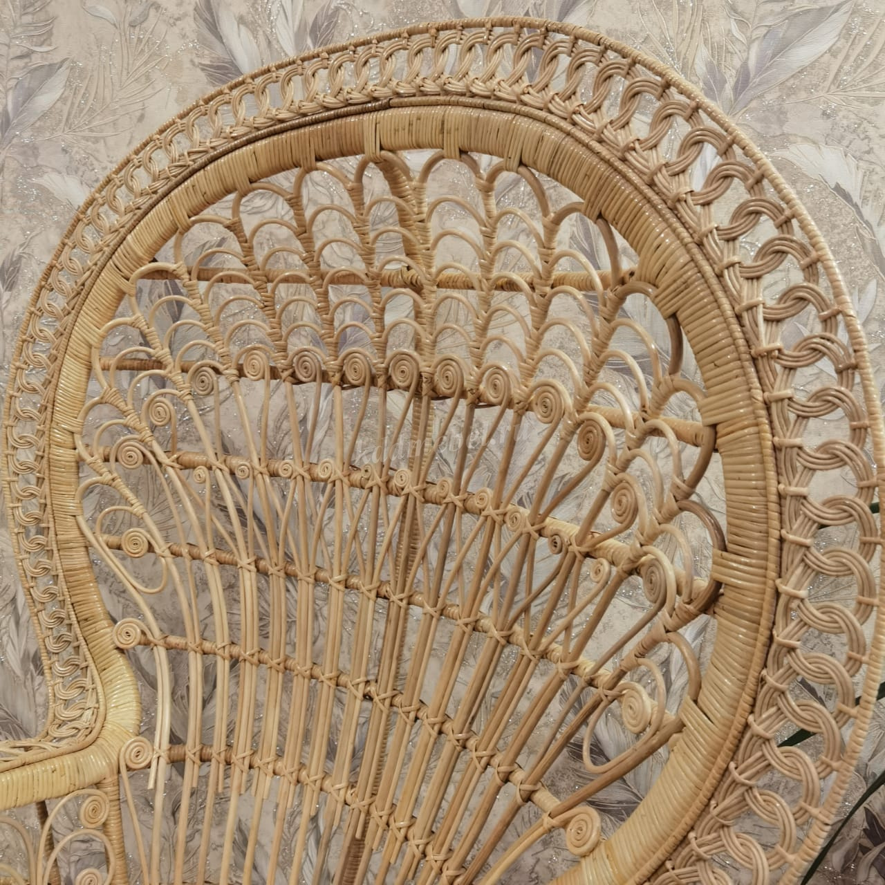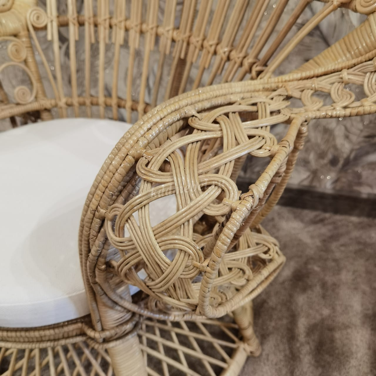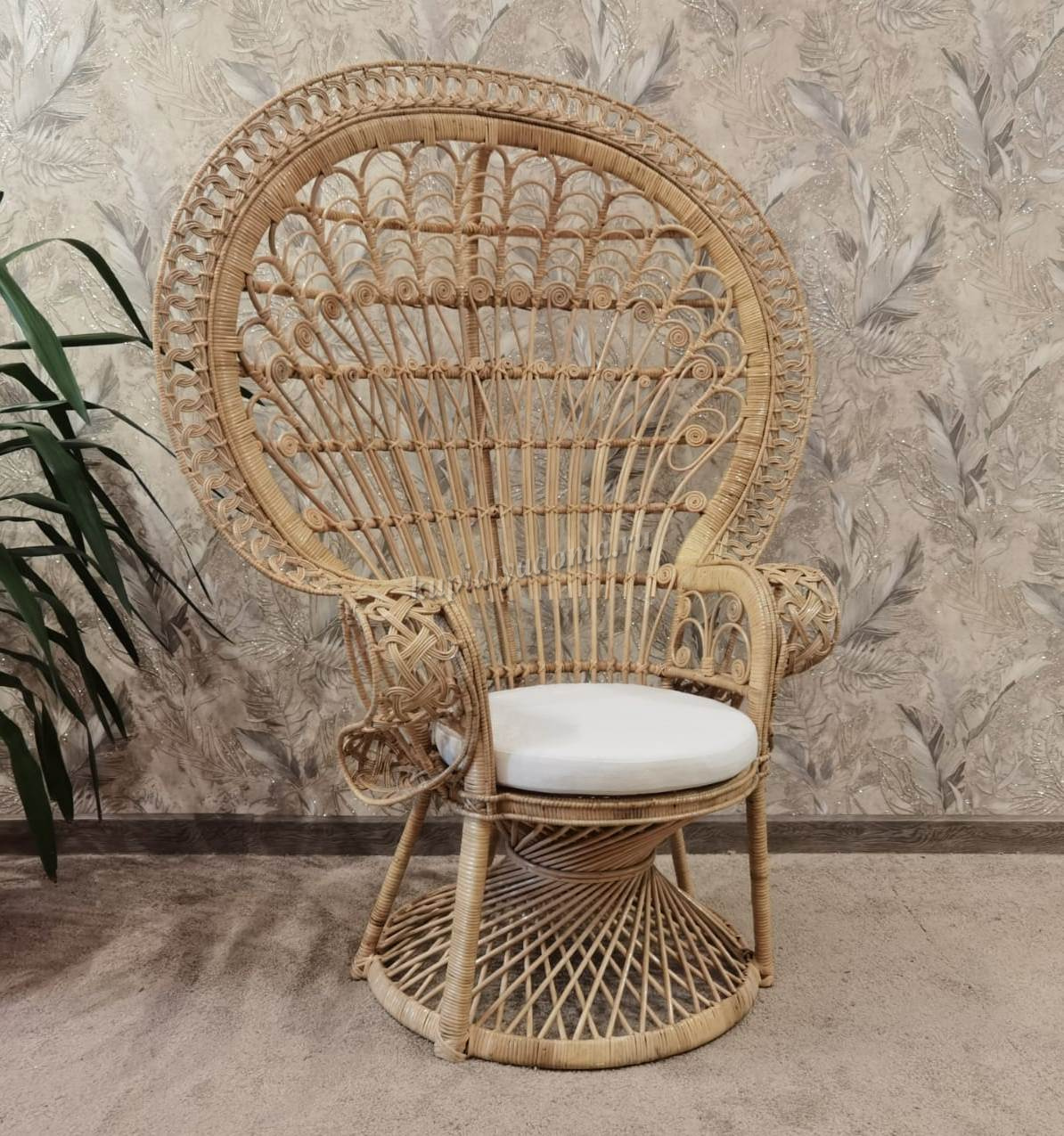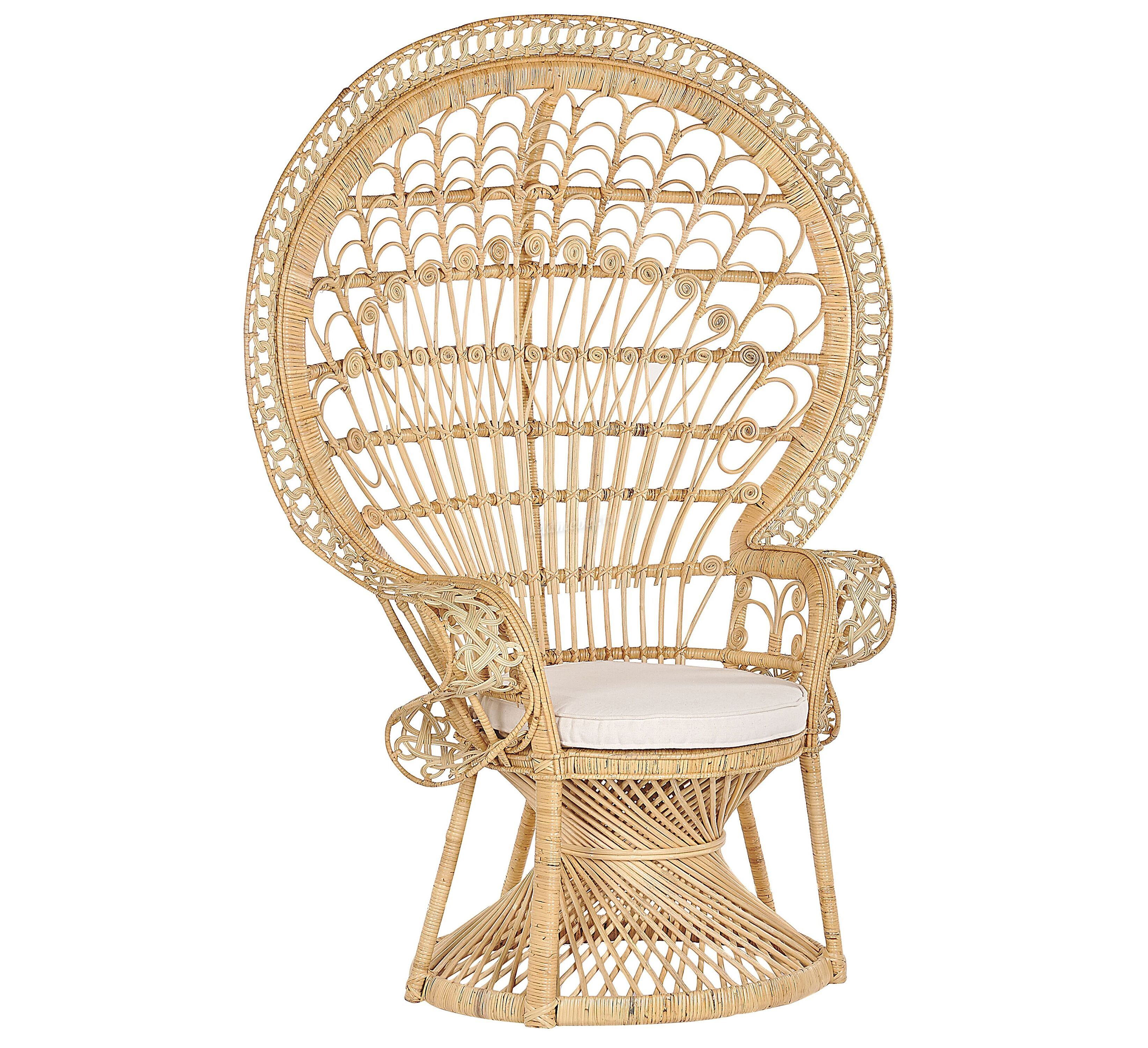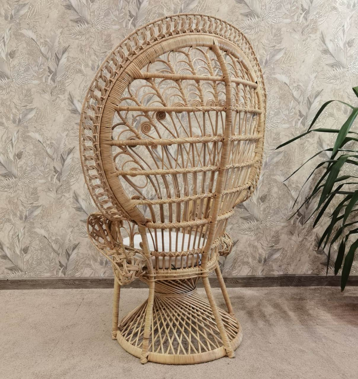 Роскошное кресло "павлин" для отдыха из натурального плетенного ротанга с подушкой.