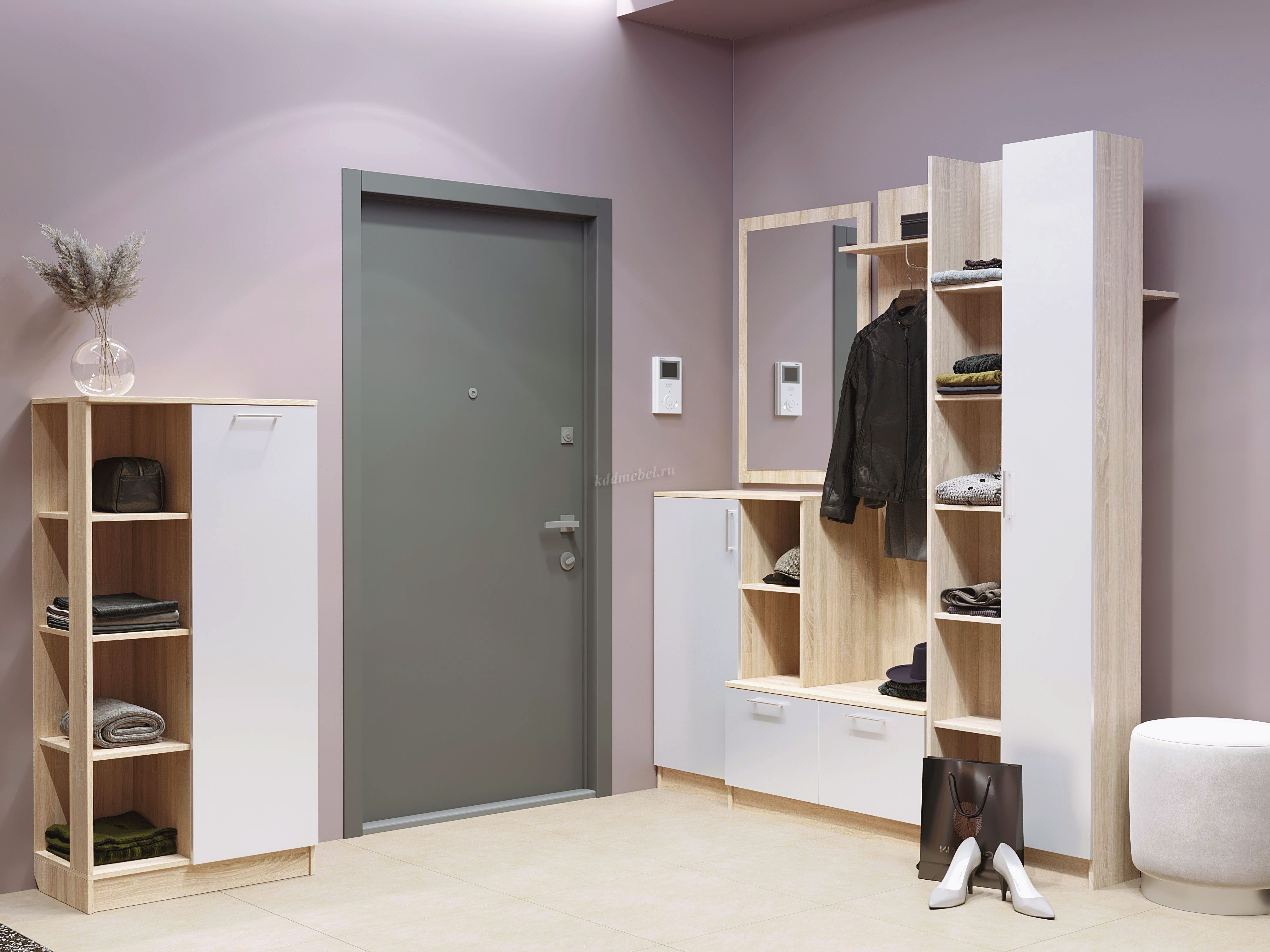 Огромным плюсом является универсальность прихожей, ее можно собрать на правую или левую сторону, что позволяет удобно организовать пространство любого интерьера.