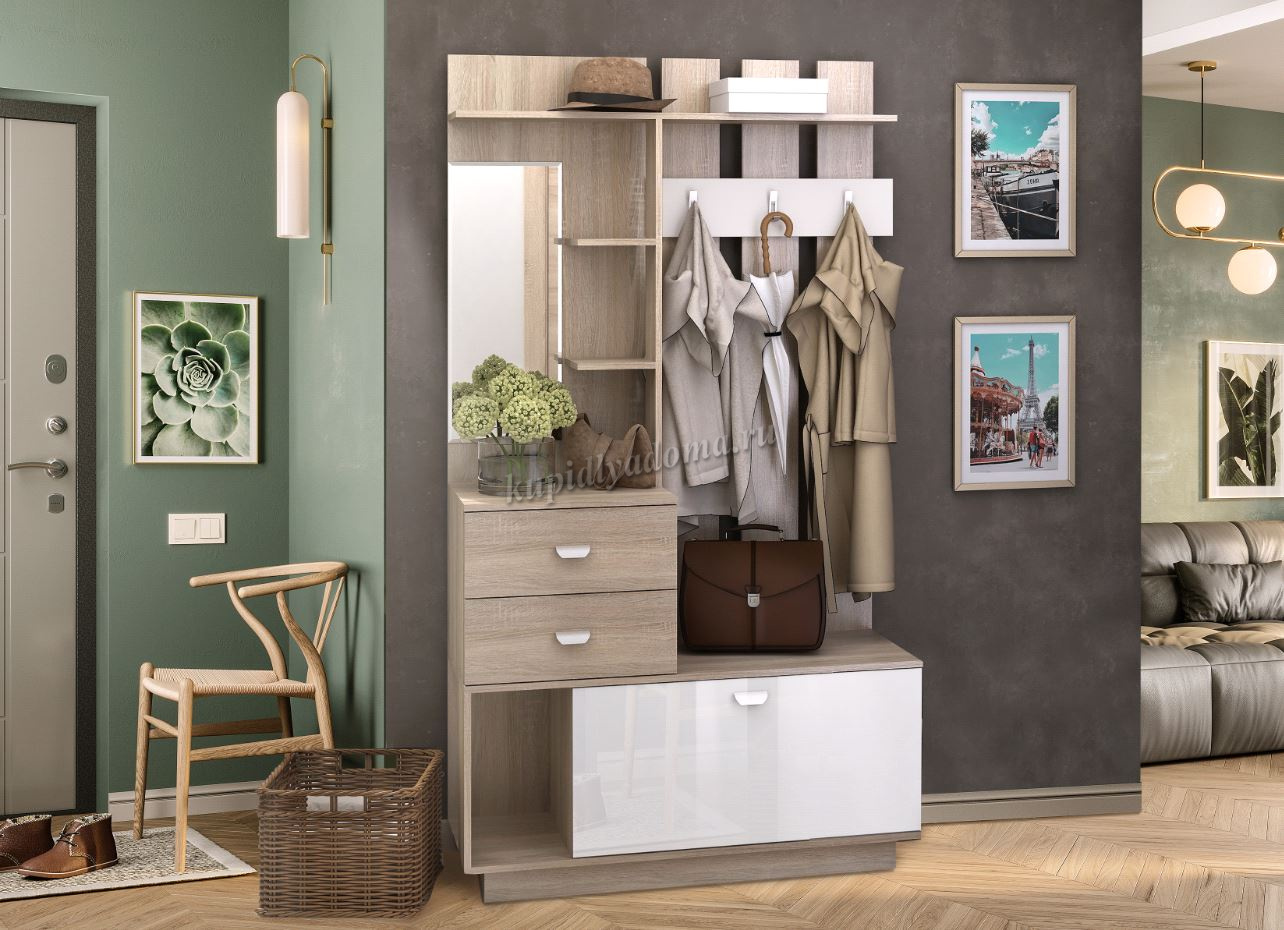 • Прихожая Бери К-2 (Дуб крафт золотой/Белое дерево)