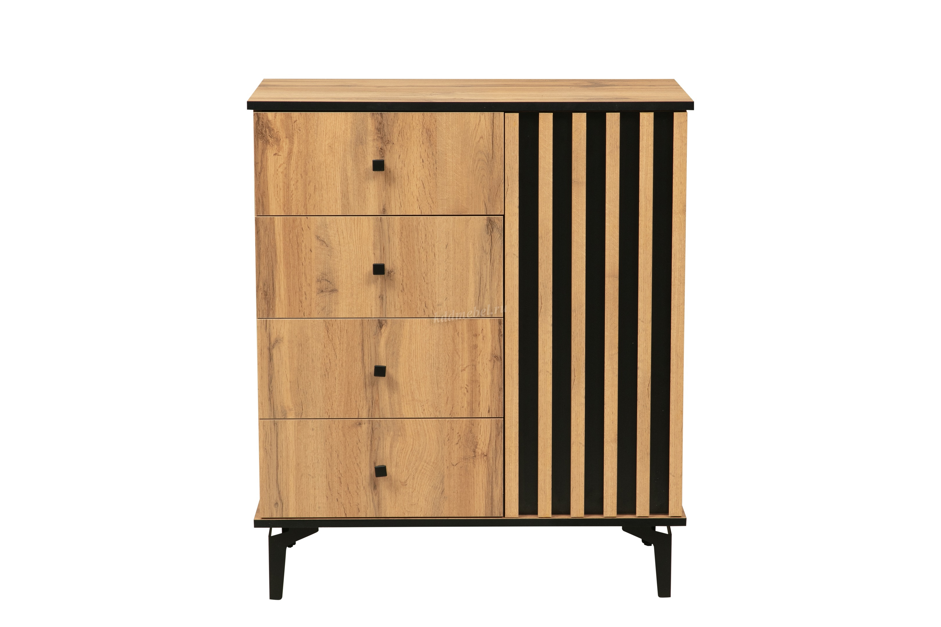 Комод 51.05 Либерти (опора h=150мм) (дуб вотан / черный / профиль: Masa Decor дуб вотан) от известного производителя отлично подойдет для многих квартир. Большой опыт в производстве позволил создать красивую, удобную и недорогую мебель которая прослужит вам долго.