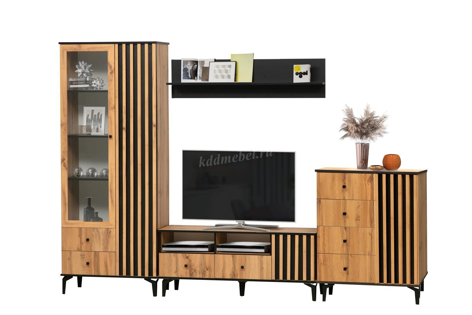 Комод Либерти 51.05 h=150 (Дуб вотан/Чёрный/Дуб вотан) наличие товара: