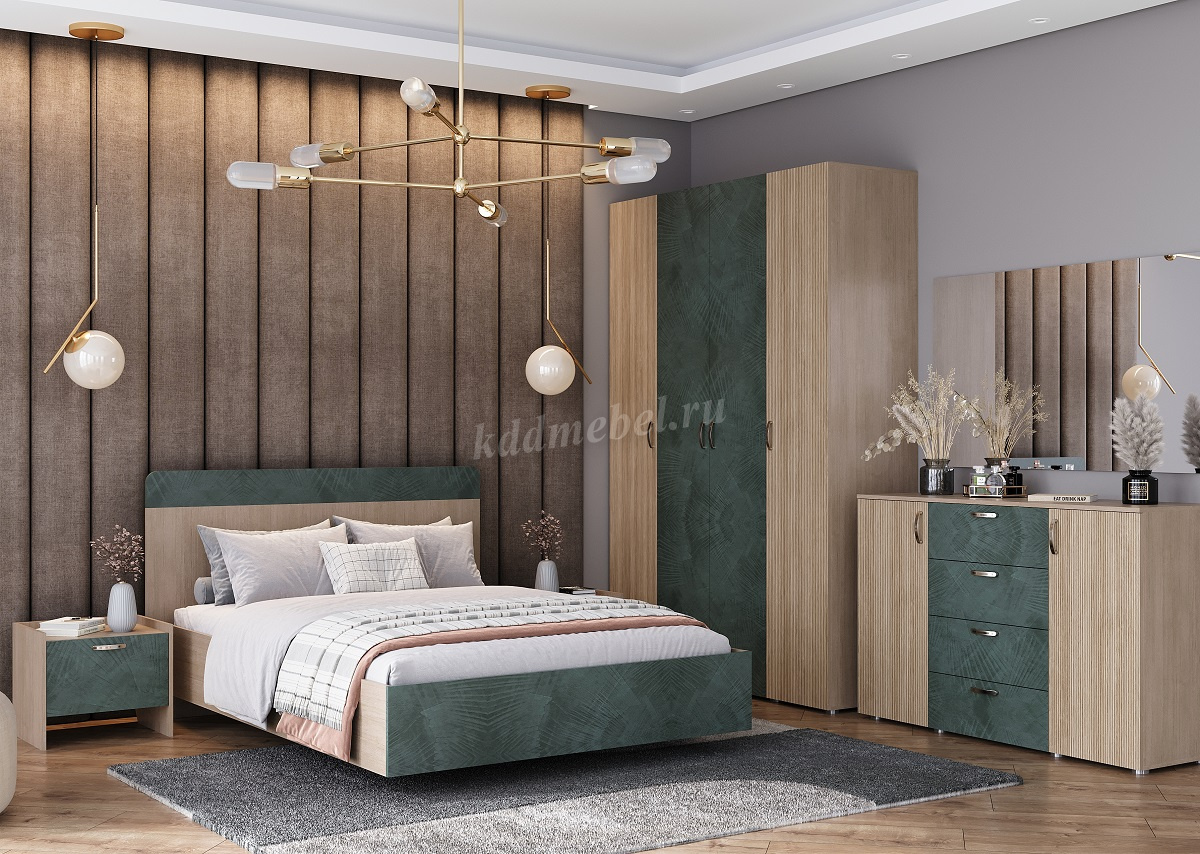 Комод Ева 2ств. с 4 ящиками (Тира/Кадена вуд/Палм грин)