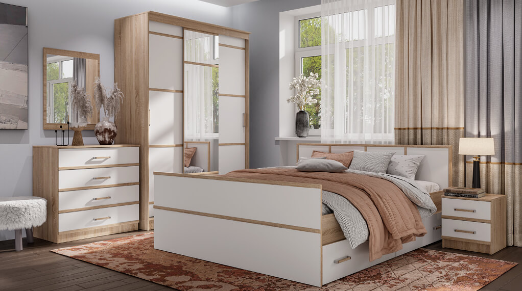 КомодыСпальниСпальни модульныеКроватиСтолики прикроватныеТуалетные столыТумбыПодушки Одеяла