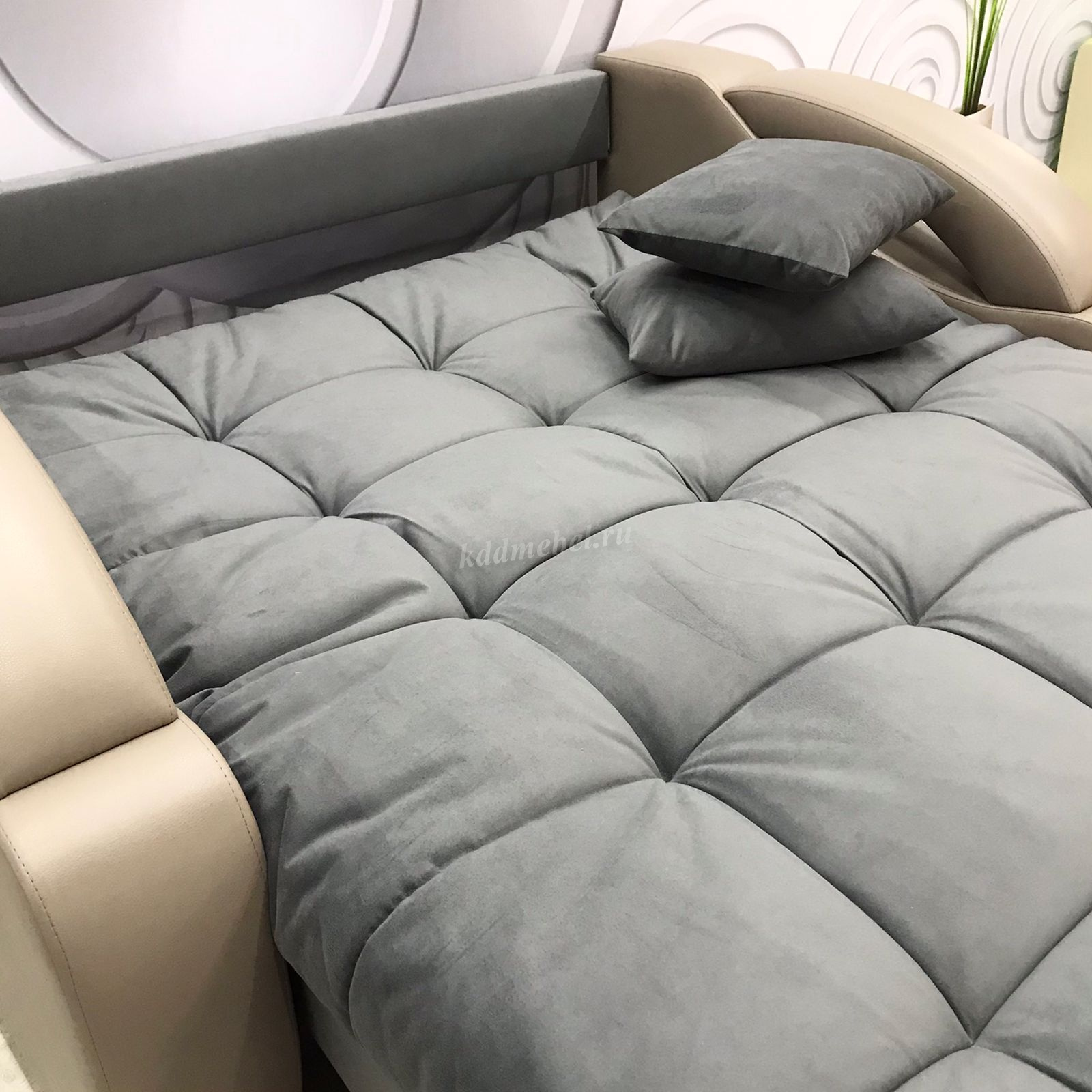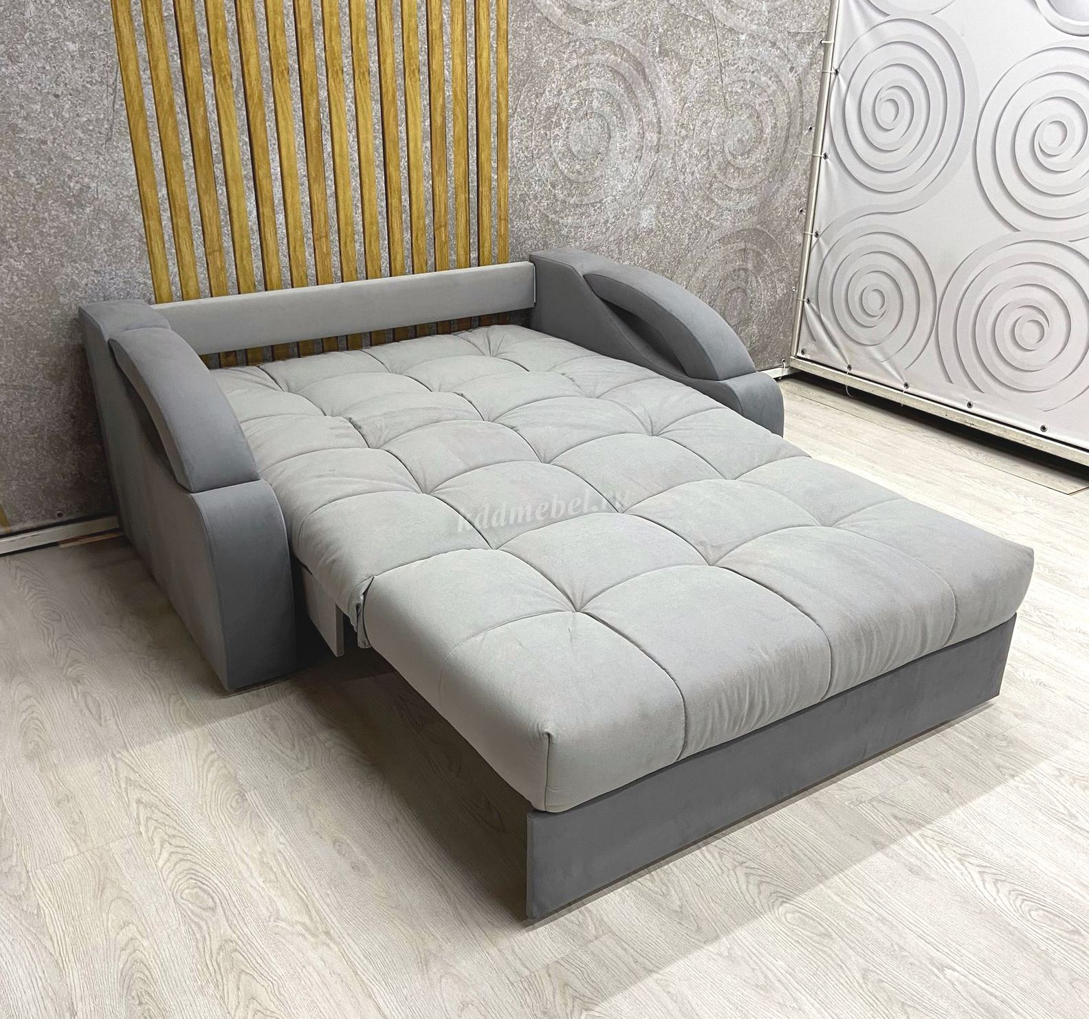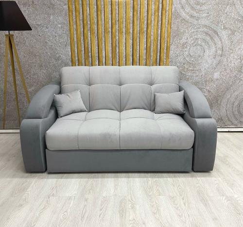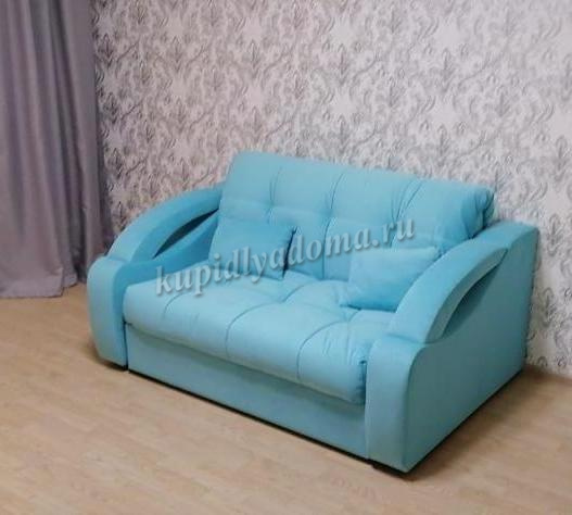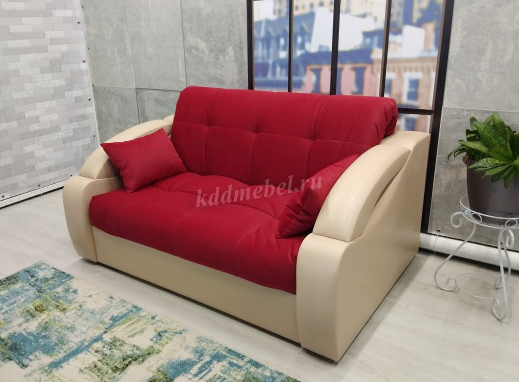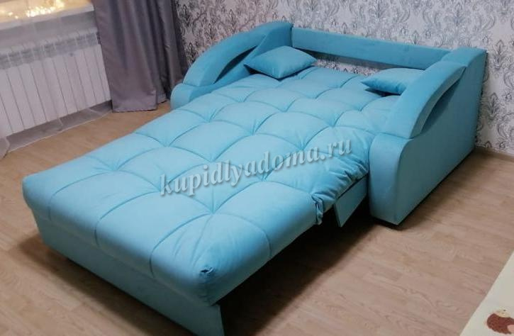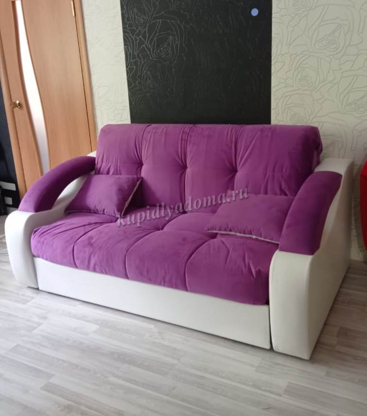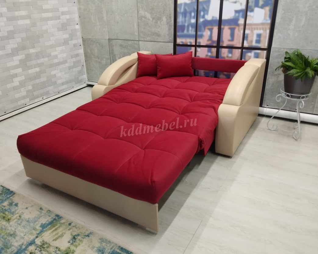 Стильный современный диван. Мягкие дугообразные подлокотники. Ровное спальное место. Возможность использования в качестве центрального объекта интерьера. В основании спального места металлический каркас с поддерживающими деревянными латами и механизмом трансформации «аккордеон». Матрас на эластичном ППУ. Съемный чехол спального места. Спальное место формируется следующим образом: цокольная часть сиденья выдвигается вперед до упора, спинка, состоящая из сложенного листового пенополиуретана, раскладывается. Для трансформирования не требуется расстояние между стеной и диваном. На фото показана модель дивана, расцветку возможно сделать под заказ или выбрать по наличию на складе. Цена может меняться в большую или меньшую сторону, в зависимости от ткани.