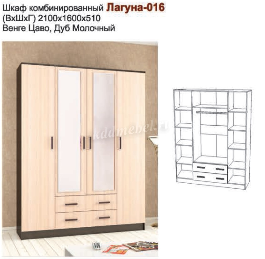 Шкаф Лагуна-016 с зеркалом (Венге/Дуб молочный) наличие товара: