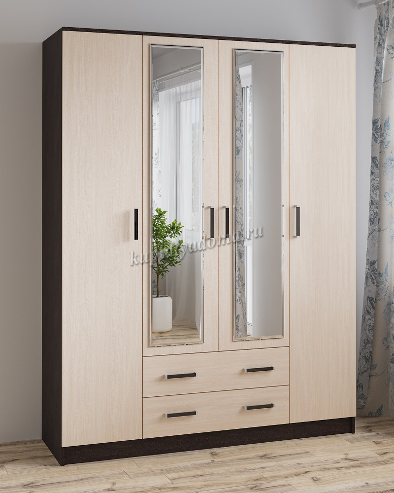 Ответ : Здравствуйте, мебель изготавливается по стандартам фабрики. Изменения не вносим. Но можно заказать подобный- Шкаф Ева Е-40 шкаф 4-х дв. (Венге/Дуб млечный)