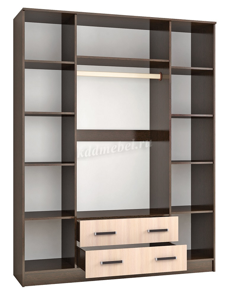 Продуманный размерный ряд. Шкафы комбинированные, есть отделение с полками для вещей и штанга для одежды.
