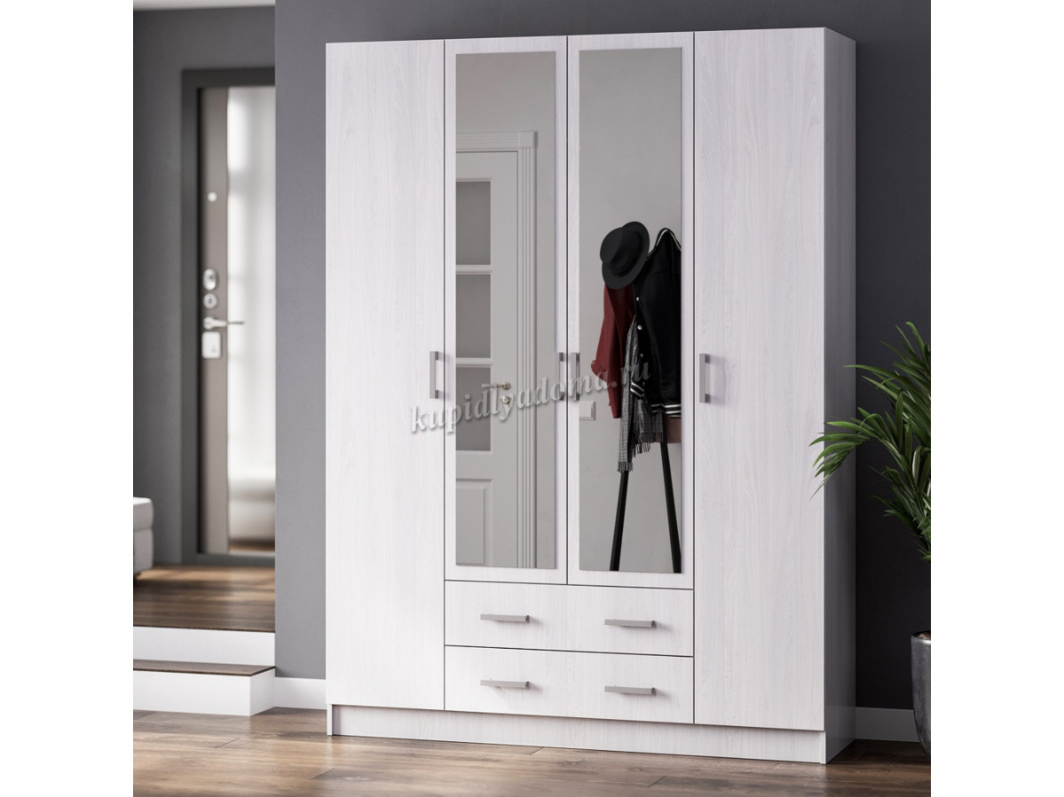 Вместительный четырехдверный шкаф "Квадро"с зеркальными фасадами — оптимальное решение для хранения одежды в спальне или прихожей. Изящное исполнение в лучших традициях стиля украсит интерьер и принесет в него уютные нотки. Внутреннее наполнение шкафа предусматривает просторные универсальные отделения для хранения белья и одежды. Посередине расположена платяная секция со штангой для вешалок, а по бокам находятся два отдела с полками.