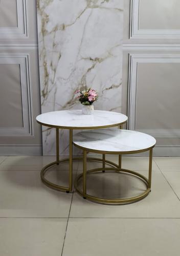 Стол журнальный Эрвин (Мрамор белый/Каркас золотой)