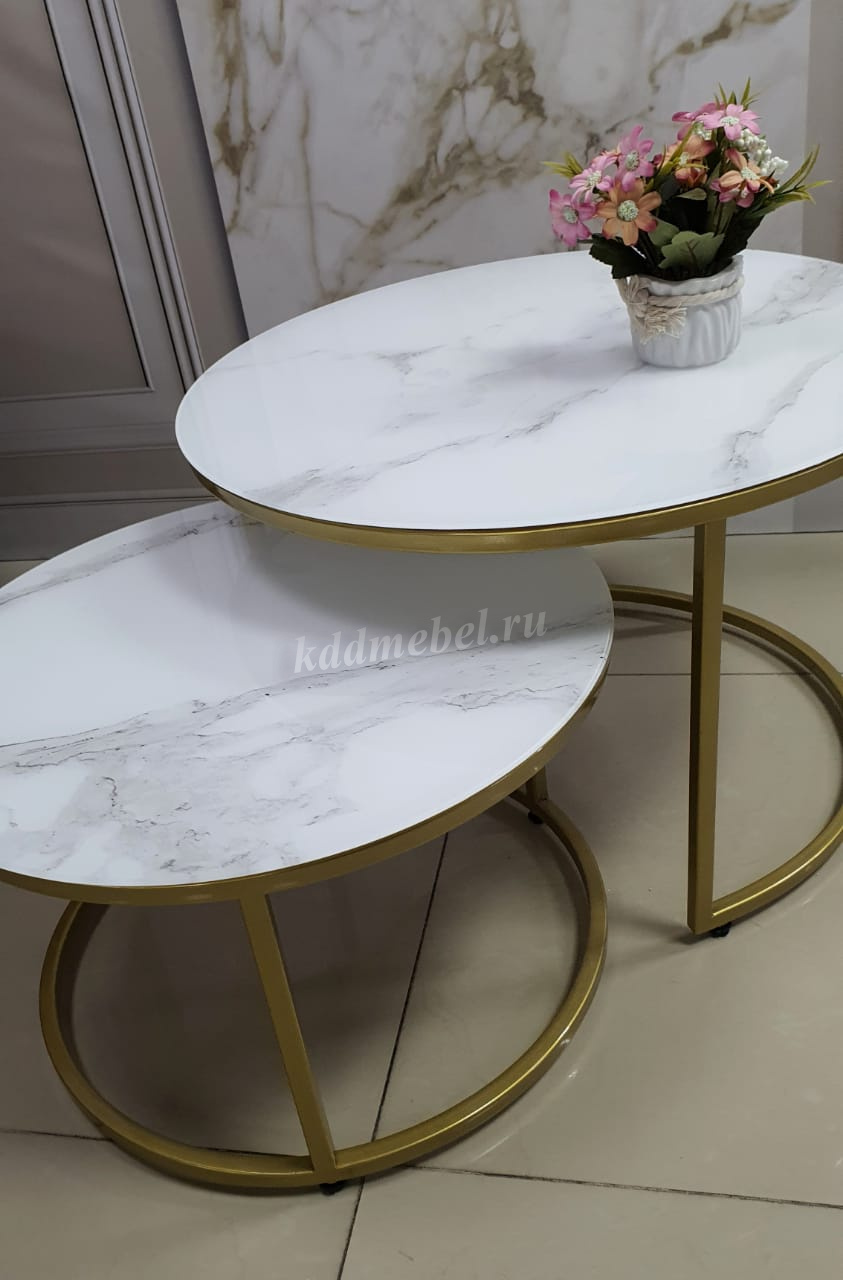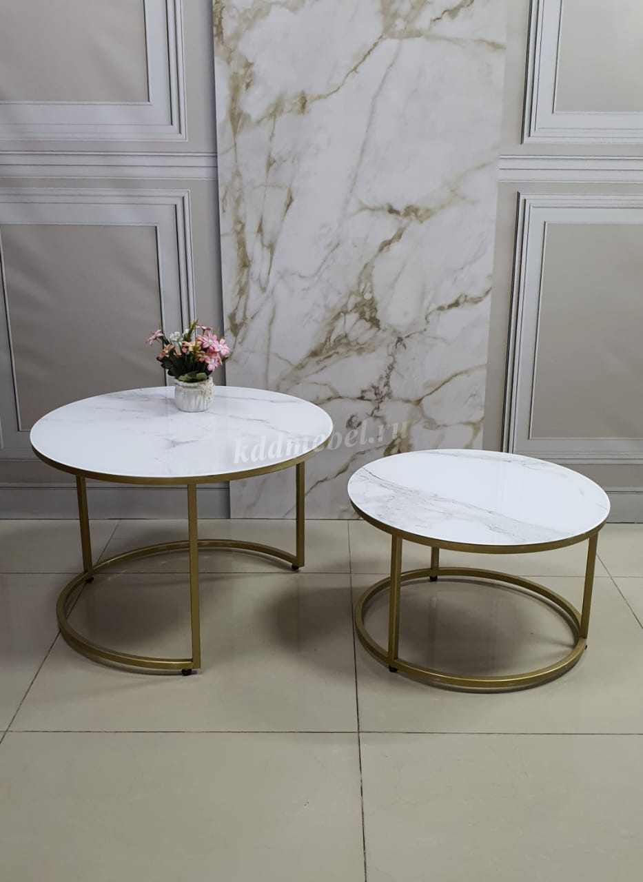 Стол журнальный Эрвин (Мрамор белый/Каркас золотой) наличие товара: